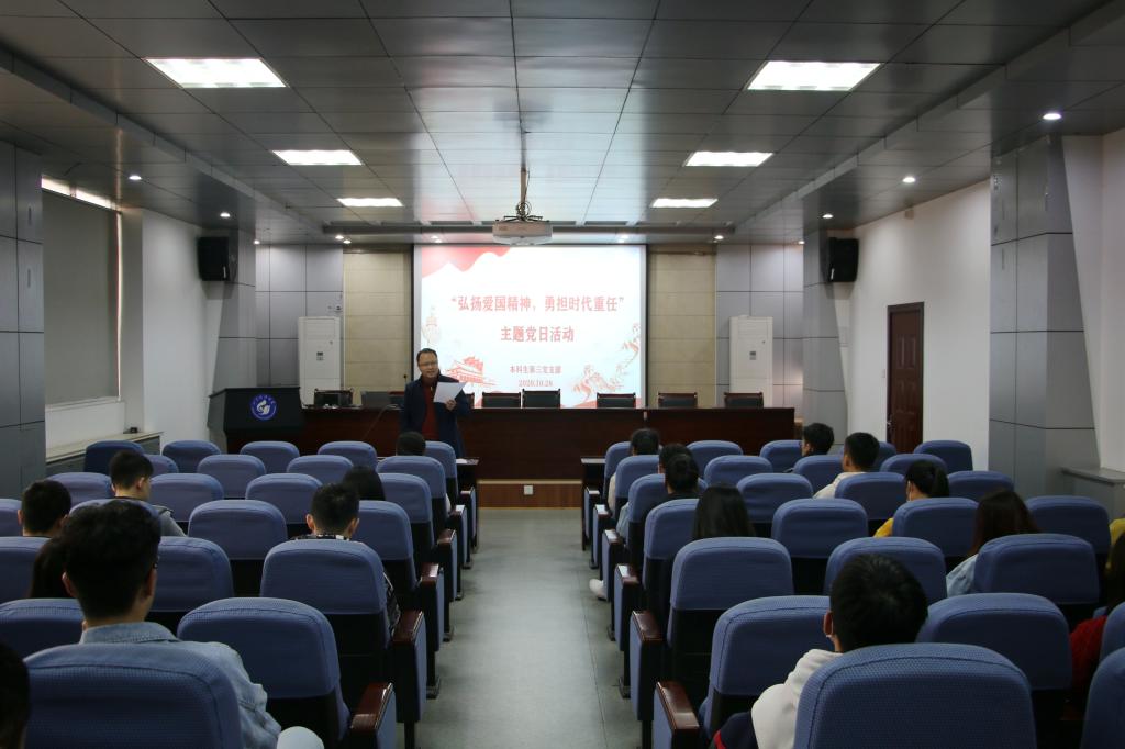 在中国人民志愿军抗美援朝出国作战70周年之际,为了铭记历史,致敬英雄,深化“四史”学习教育,10月28日下午,澳门网投本科生第三党支部在J15-219报告厅开展了“弘扬爱国精神,勇担时代重任”主题党日活动,全体党员参加。