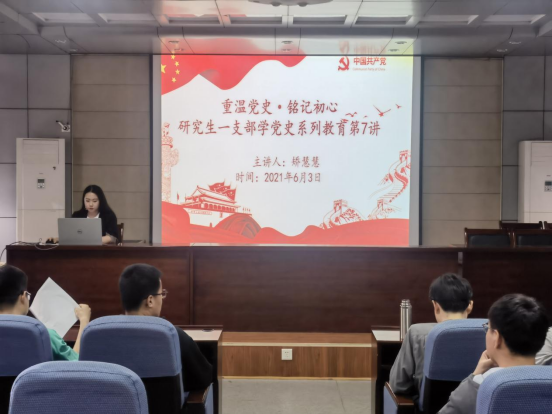 为扎实推进党史学习教育,引导支部党员和入党积极分子加深对党史的理解和认识,努力建设学习型党支部。6月3日,澳门网投研究生第一党支部在J15-219报告厅开展“重温党史,铭记初心”学党史系列主题教育。支部全体党员和入党积极分子参加报告会,研究生第一党支部党员矫慧慧以“学党史砥砺奋进,知党恩不忘初心”为题为全体参会同学讲党课。