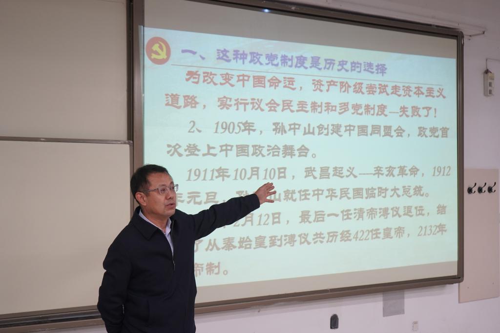 王永君首先介绍并对比了其他国家的多党制、两党制和一党制等政党制度,并为大家介绍了我国的多党合作和政治协商制度的发展历程。他指出,从洋务运动到戊戌变法、从辛亥革命到北伐战争、从土地革命到抗日战争、从新中国成立到祖国强盛的今天,充分证明中国共产党领导的多党合作和政治协商制度是符合中国实际国情的,我国的政党制度是历史和人民的选择。此外,王永君还对新冠疫情爆发以来世界各国应对和防控新冠疫情取得的成效进行对比,从与生俱来的稳定性、管理社会的高效性、容易发挥民主功能和更能体现监督功能四个方面阐述了我国政党制度的优越性。