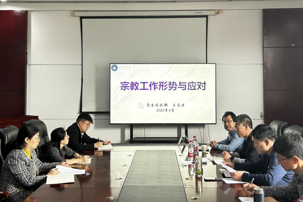 4月18日,澳门网投党委理论学习中心组(扩大)开展2023年第六次集体学习,学校党委统战部常务副部长、台港澳工作办公室主任王永君应邀作《宗教工作形势与应对》专题报告。会议由学院党委书记宋西路主持。学院党委理论学习中心组、全体党支部书记、教工党支部支委委员、系所中心主任、科室负责人参加了会议。