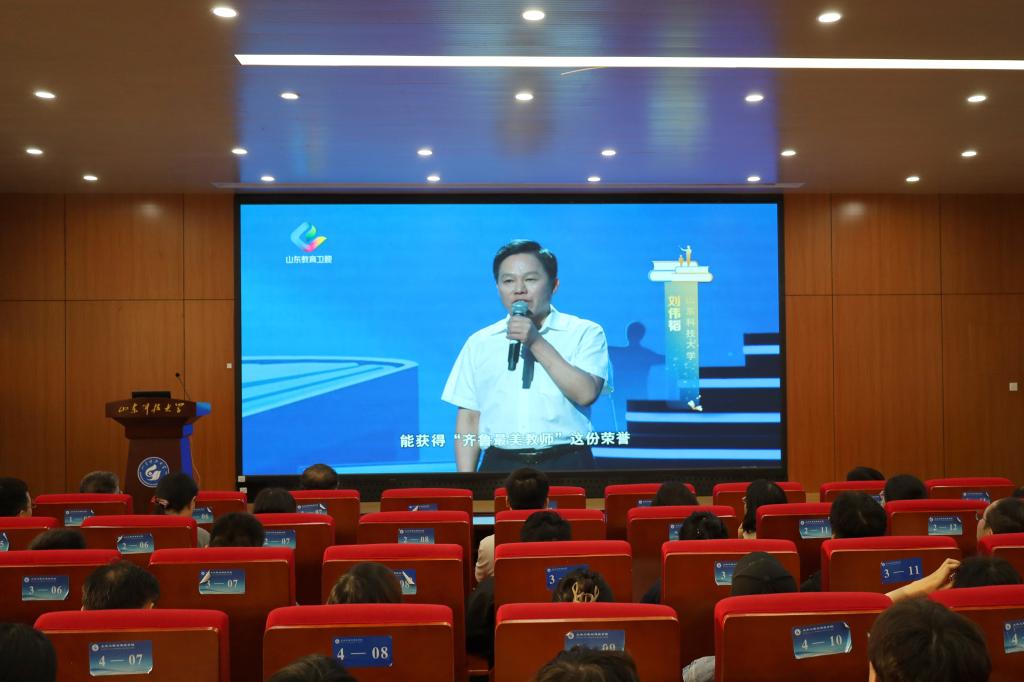 会议最后,学院全体师生党员共同观看了“齐鲁最美教师”颁奖仪式录像。