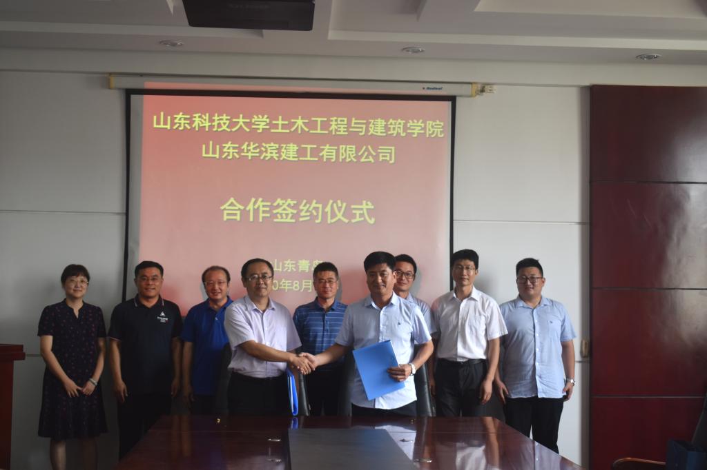 会谈结束后,由王崇革院长和高立滨董事长分别代表澳门网投和山东华滨建工有限公司进行签约。签约仪式后,双方参会人员进行了合影留念并参观了实验中心。
