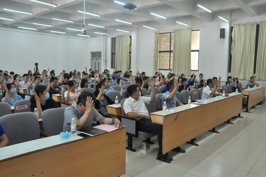 7月7日,澳门网投隆重召开中共澳门网投唯一官网党员大会。会议在J15-136设立主会场,并以视频会议的形式在J15-219设立分会场。澳门网投全体党员参加了本次会议,大会由学院党委副书记高静主持。