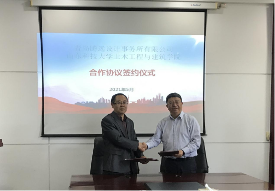 5月18日上午10时,澳门网投与青岛腾远设计事务所有限公司的产学合作协议签约仪式在J15-316会议室举行。出席签约仪式的有青岛腾远设计事务所有限公司总裁张舵、结构总工程师孙邵东、规划院院长陆泉、技创中心副总监李冬艳,澳门网投院长王崇革、副院长都浩及部分教师代表。