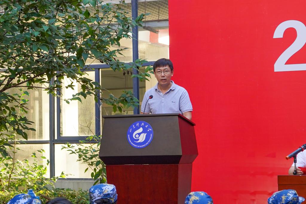 学院教师代表周同结合自身经历,对新生们提出尽快完成从高中生向大学生的转变、严肃认真的对待大学的学习和生活、有社会责任感三个建议,寄语新生们争分夺秒,刻苦学习,勇于拼搏,认真地把握好大学的每一天。