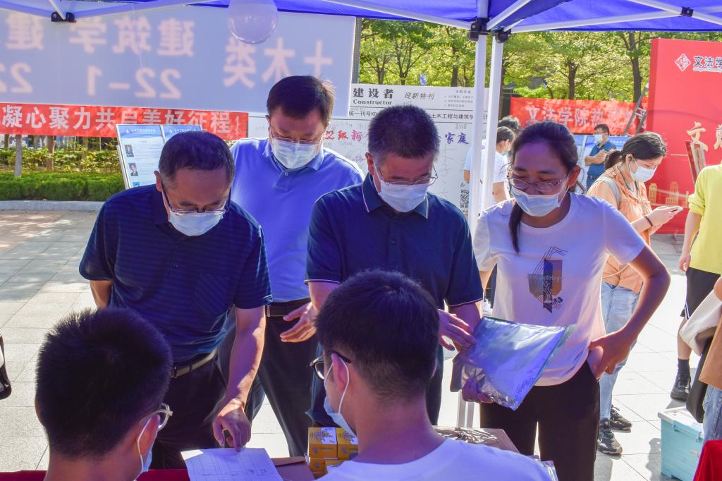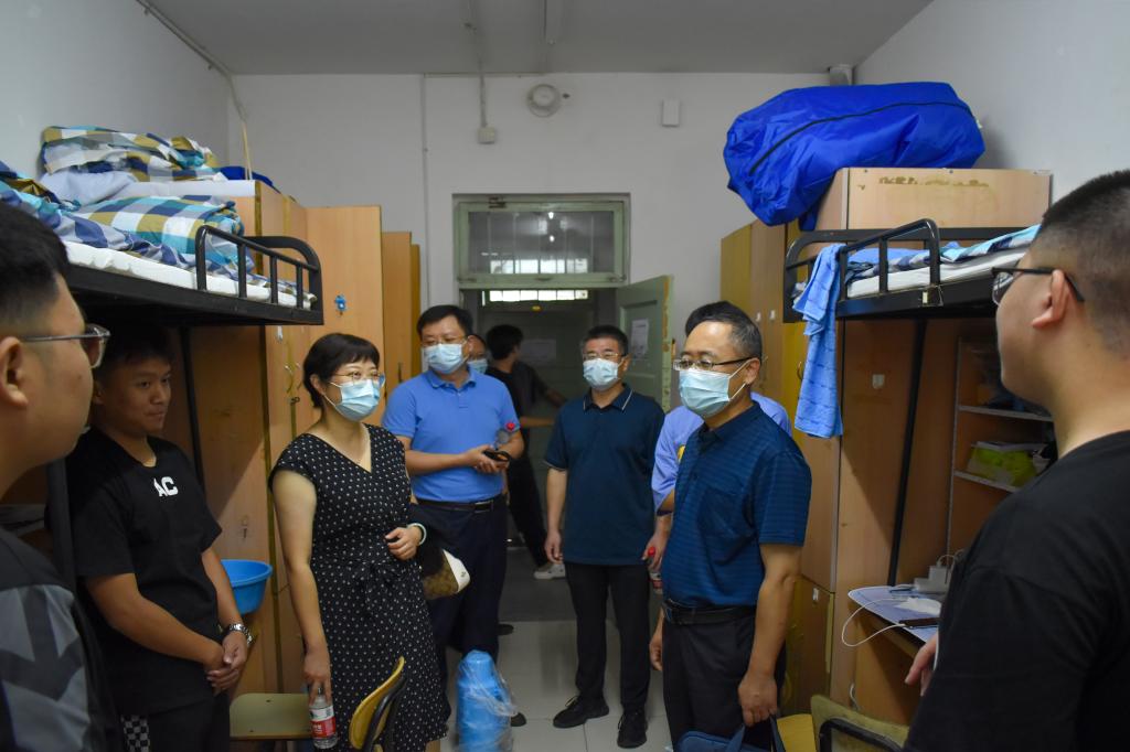 院党委书记宋西路、院长王崇革、院党委副书记高静、副院长李朋前往新生宿舍慰问新生,关心新生们的生活情况;对宿舍出现的问题提出解决方案;并给予22级新生三点建议:锻炼自己独立处事的能力、尽快适应大学生活、谨防诈骗保护私人财产。