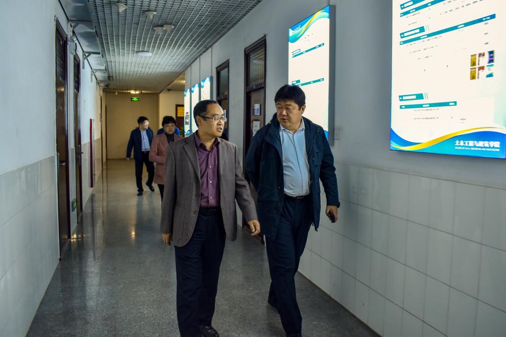 为全面深化校企合作,精准对接人才供需,10月28日下午,青岛市公路事业发展中心副主任王震、青岛大学发展规划处副处长刘新、青岛路桥建设集团人力资源部(党群部)部长谢振宇和青岛市公路事业发展中心农村公路服务处副处长薛崇山一行来院参观交流。澳门网投唯一官网澳门网投院长王崇革、学院党委副书记高静、学生处公寓管理中心主任赵洋、道路与桥梁工程系主任单景松、副主任聂瑞锋、学生工作办公室主任朱统汉、毕业生辅导员刘超参加交流会。