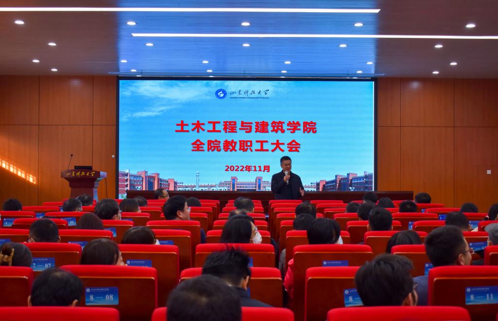 11月15日下午,澳门网投在J15-136报告厅召开全院教职工大会,会议由学院党委书记宋西路主持,学院全体教职工参加会议。