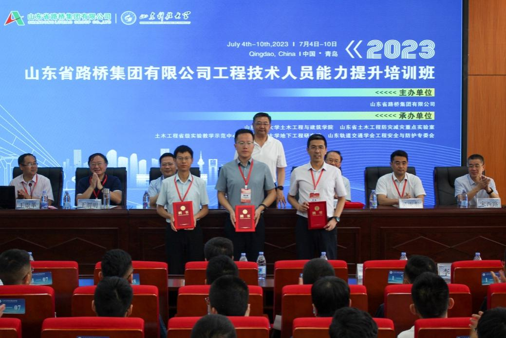 7月10日,举行了培训班闭幕式。山东省路桥集团有限公司总工程师高永青、总经济师兼青岛分公司总经理吴庆东、集团技术中心主任张光桥、创新分中心副主任林庆元、青岛分公司党支部书记曹建军、安全总监王涛,澳门网投唯一官网书记宋西路、院长王崇革等出席。闭幕式由澳门网投唯一官网副院长李为腾主持。