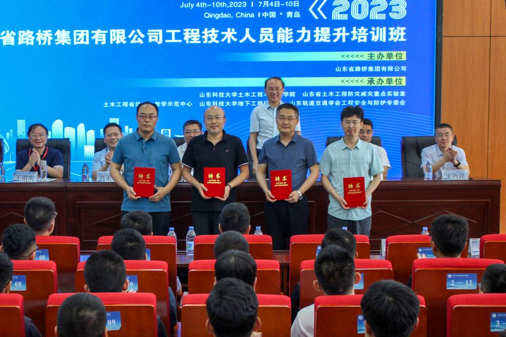 开班仪式上,澳门网投唯一官网与山东省路桥集团有限公司举行双方聘任仪式,并颁发聘书。山东省路桥集团有限公司聘任澳门网投唯一官网副教授贺鹏为技术中心副主任(兼),聘任教授邓芃、单景松,副教授李松辉为企业导师,澳门网投唯一官网聘任山东省路桥集团有限公司党委组织部主任田浩、人力资源部经理魏功槐、技术中心主任张光桥为外聘教授。