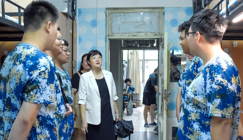 “开学第一课”学院老师进入宿舍,关心学生生活。