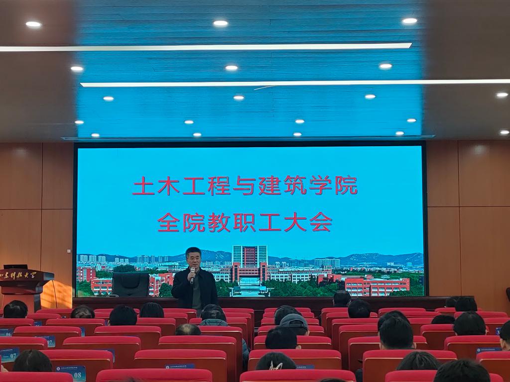 会上,宋西路向全院教职工传达了学校2024年工作会议上罗公利书记的讲话精神。院长王崇革传达了学校2023年度工作总结及2024年度工作安排,并从教学、科研、人才引进、实验室建设、研究生培养、学团工作等方面总结了学院2023年度工作,并对学院2024年度重点工作及常规工作进行了安排部署。副院长李朋就学校本科教学工作会议精神进行了传达,并对学院本科教学工作、专业建设、培养方案修订、学科建设及师资队伍建设等重点工作进行了布置。
