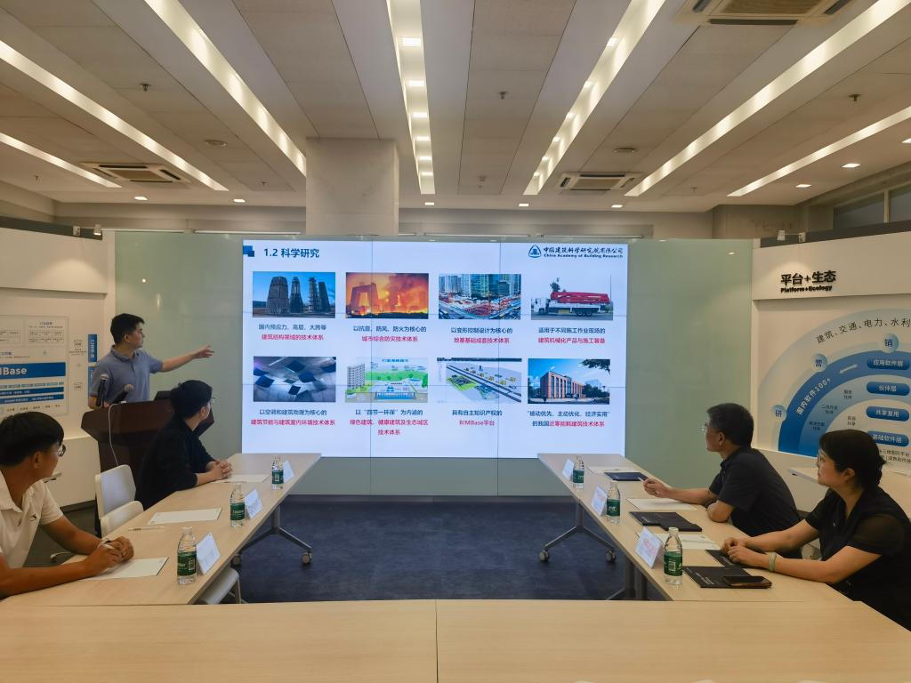 在中国建筑科学研究院,宋西路一行参观了近零能耗示范楼、光电示范建筑(建筑光伏零碳改造项目)和PKPM数字化展厅,听取了工作人员的讲解。座谈交流中,中国建筑科学研究院企业发展部高级主管、土木工程2011级校友周硕文对宋西路一行表示欢迎,对母校的培养表示感谢,回忆了在母校求学的美好时光,介绍了企业概况和自身发展情况。宋西路对校友一直以来对母校工作的支持表示感谢,介绍了学校、学院发展近况,他表示校友是学校宝贵资源,希望校友发挥好校企之间桥梁纽带作用,寻求校企合作机遇,实现校企合作共赢。
