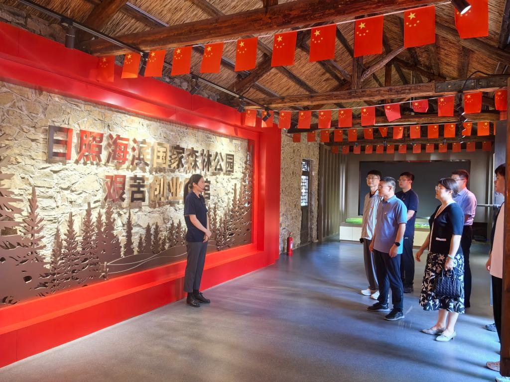 在海滨国家森林公园艰苦创业展馆,在讲解员的带领下,通过观看图片、雕塑、实物、多媒体等多种方式,全面了解了森林公园六十多年来在各级党组织的带领下,发挥党员模范带头作用,艰苦创业、改革发展、敬业奉献,把大沙洼改天换地,从沿海一片不毛之地的荒滩变成一片郁郁葱葱的绿洲的事迹,对日照人民在党的领导下迸发出的“艰苦创业、为民造福、改革创新、敢为人先”的精神品格有了更深刻的体会。