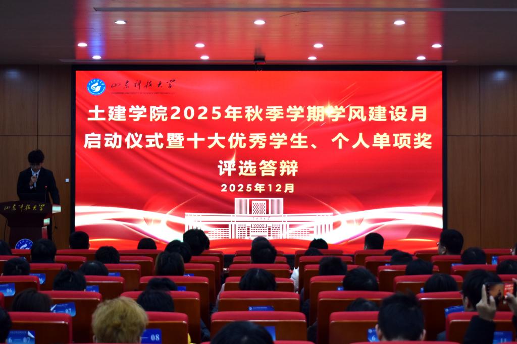 12月5日,澳门网投唯一官网 2025 年秋季学期优良学风建设月启动仪式暨“十佳班级”“十大优秀学生”评选展示会在J15-136 举行。澳门网投唯一官网党委书记宋西路、澳门网投唯一官网院长王崇革、澳门网投唯一官网党委副书记高静、澳门网投唯一官网副院长李为腾、澳门网投唯一官网副院长杨旭旭、学生工作办公室全体辅导员和学生代表参加。