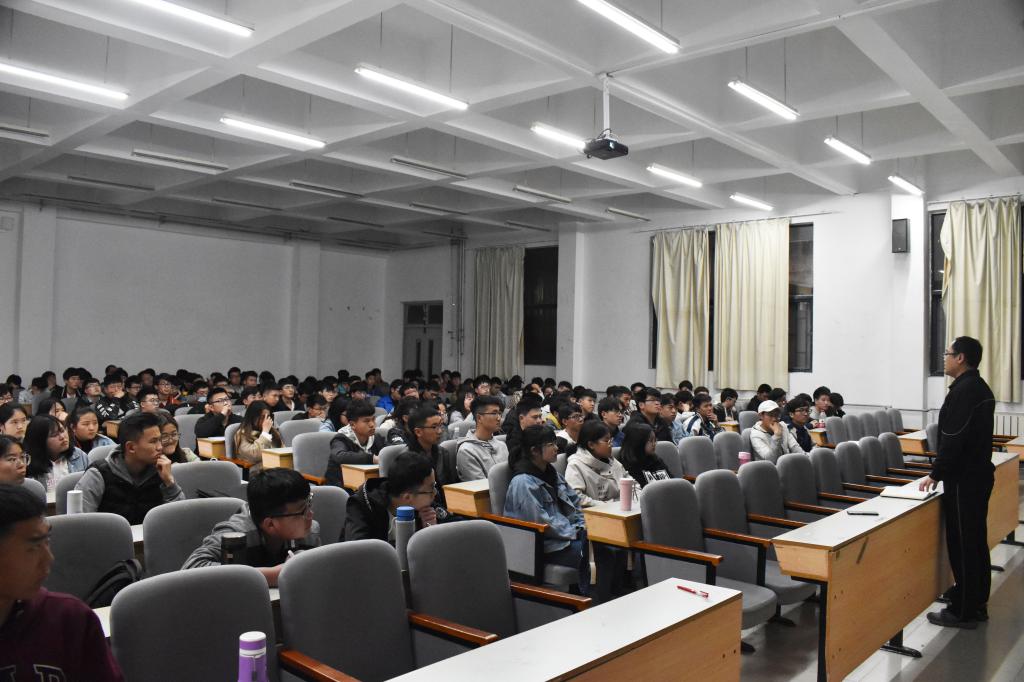 首先,王崇革分别向同学们介绍了建筑工程、岩土工程及道路与桥梁工程三个方向的概况,同时结合实际,介绍了每个方向在专业发展现状、社会需求、未来工作规划的特点。随后,他介绍了各个方向的师资教学条件,通过介绍优秀骨干教师的科研创新成果,让同学们对各个方向有进一步的认识。最后,王崇革对学院专业分方向工作进行了安排部署,学院将实行填报志愿制,按照前三个学期的专业成绩对学生进行综合排名,统筹推进,建议同学们要通过亲朋好友、老师、同学、网络等多种渠道获取对自己有益的信息,根据自己的能力、兴趣谨慎选择,避免盲目从众。