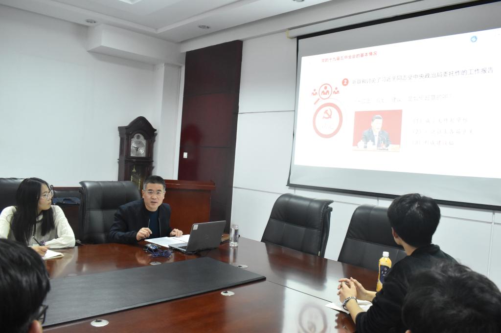 12月7日下午,澳门网投党委书记宋西路为所联系的班级工程管理19-1班,以“开启新阶段,踏上新征程”为主题,宣讲了党的十九届五中全会精神,辅导员艾山参加了宣讲会。