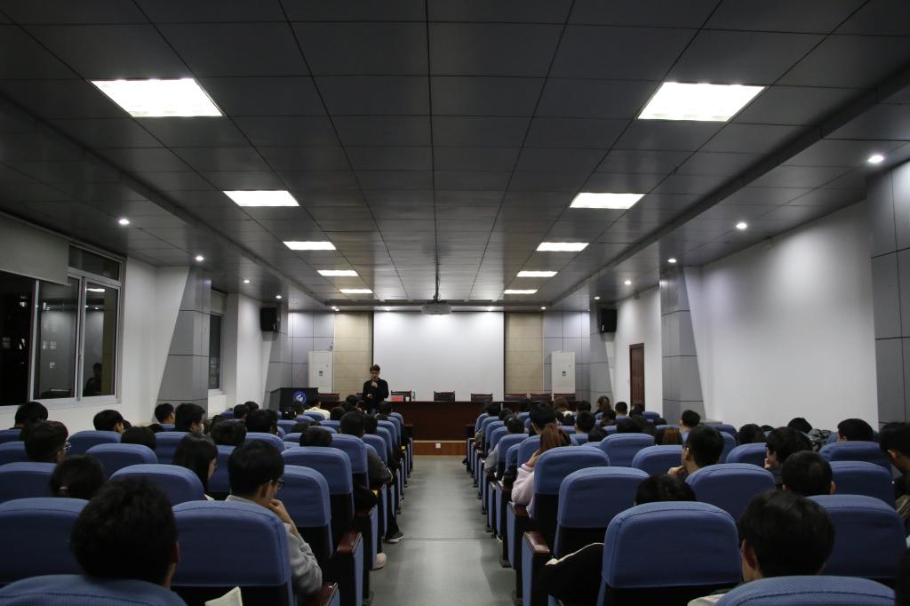 首先,李剑飞以“为什么要选择自己的所学专业”对在场同学进行提问,引出大学生应如何对自己职业生涯进行“黄金规划”。随后,李剑飞从“什么是职业规划”、“为什么要做职业规划”以及“如何做职业规划”三个方面讲述了本次会议的重点内容。他指出,进行职业规划就要掌握“点线面法则”,即点是未来的岗位,线是决定点的平台,面则是影响平台趋势的行业。紧接着,李剑飞对参加本次比赛需要注意的两个问题进行讲解,一是资料收集的途径,二是职业规划书制作的具体要求。最后,李剑飞表达了对同学们的殷切期望,希望同学们能以积极的心态从容面对不确定的事情,脚踏实地走好当下的路,更好的把握未来。