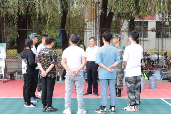 上午,站军姿、整着装、立正、稍息及跨立等训练要领早已初见成效。训练过程中,教官们细心严格的调整着每位同学们的动作,尽管声音已经沙哑,但教官们仍然喊着铿锵有力的口号。在优秀教官的带领下,同学们的热情也被带动起来。在训练过程中,学校党委常委、副校长高建广前来视察土建新生的军训情况,关心慰问少数民族同学是否习惯新的学习生活环境,并叮嘱他们要多注意身体,将学校当成自己的另外一个家。