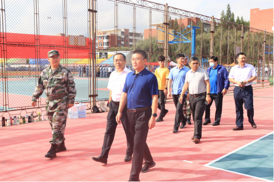 学校党委常委、副校长高建广到学院训练场地,驻足观看了土建五营的训练情况,并对今天的训练计划以及完成情况进行了详细的了解。澳门网投党委书记宋西路、院长王崇革等学院领导班子到训练场地看望新生,对他们刻苦训练的精神给予了肯定,并鼓励新生们再接再厉,以饱满的热情迎接接下来的训练。
