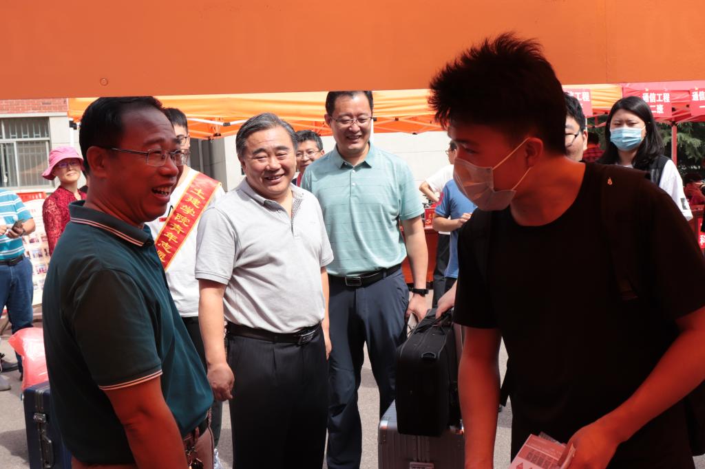 在迎新过程中,现场秩序井然,各项工作有序进行。校领导莅临学院报到点和学生宿舍视察迎新工作;学院党委书记宋西路、院长王崇革等领导老师亲临现场询问迎新情况并给予指导,深入宿舍看望新生亲切交流;学院辅导员们全天坚守在迎新现场,统筹安排、协调现场工作;学院学生会全体成员、助理辅导员以及学生志愿者积极参与到迎新中,全力配合完成学院迎新工作。