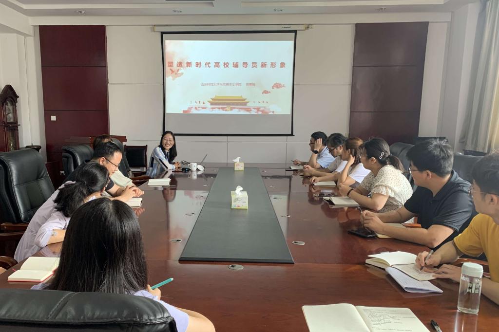 7月14日上午,澳门网投举办辅导员“三省”学堂专业化提升专题培训班第二讲,邀请到中国高等教育学会公共关系专业委员会成员、青岛市思想政治名师宣讲团名师、马克思主义学院副教授苑素梅以《塑造新时代高校辅导员新形象》为题上课。本次培训由学院党委副书记、副院长高静主持,全体专兼职辅导员参加。