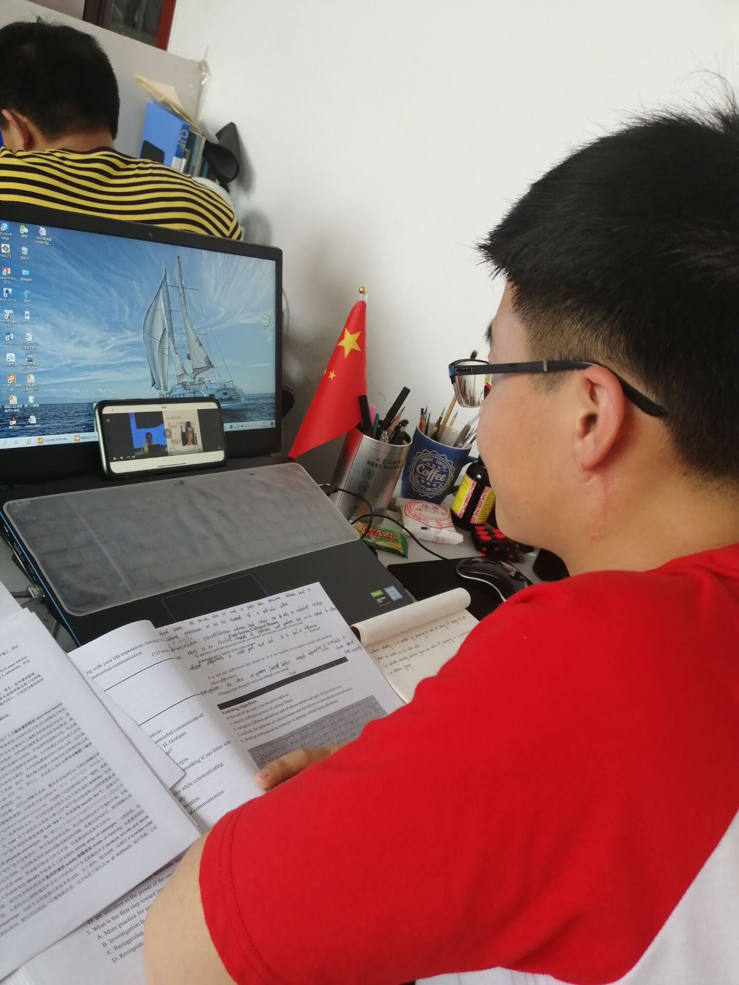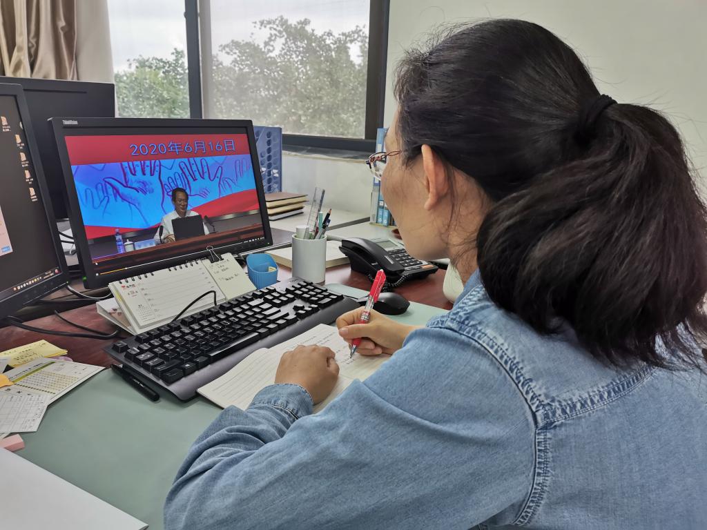 6月16日,澳门网投组织部分返校学生于J7-215教室收看校党委书记罗公利以“在战‘疫’中我们一起成长”为题的精彩思政课。学院全体学工干部、剩余返校学生、未返校学生均通过网络平台共上思政大课。