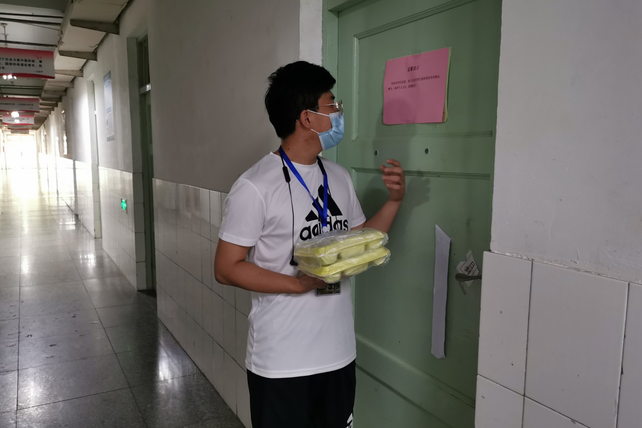 在宿舍中,学生党员们佩戴挂牌,主动亮明身份,帮助楼管人员登记返校学生信息,核查各宿舍填写《学生宿舍卫生消毒通风测温记录表》《返校学生轨迹记录表》和是否存放违禁物品的情况,为省外隔离的学生配送餐食。“学生党员先锋岗”成员高佳丰表示,作为一名毕业生党员,能够参加此次党员先锋岗感到十分荣幸,在工作过程中也深刻体会到学校学院防疫工作的严格与工作人员的辛苦。