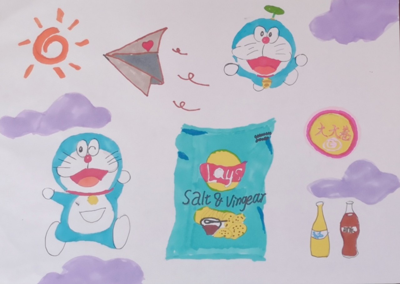 融情感于笔端,描绘多彩童年。回忆中的辣条和汽水、门口的西瓜和旋转的风扇、翱翔的纸飞机与满墙的贴纸,一幅幅深埋于记忆中的画卷,将学生们带回到了童年,重温儿时的记忆与温馨。本次主题绘画活动选取童年回忆中极具代表性的事物为对象,学生们妙笔生花,创意满满。