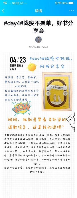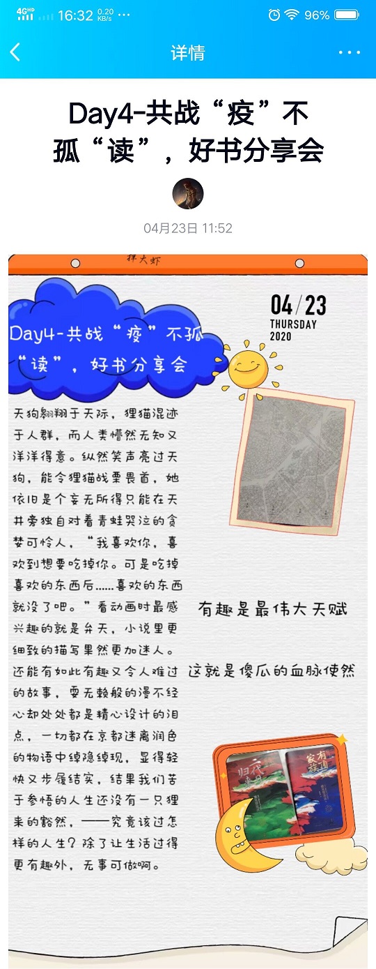 4月23日,值此第25个世界读书日到来之际,澳门网投依托线上平台,举办以“共战‘疫’不孤‘读’,好书分享会”为主题的世界读书日特别活动,鼓励土建学子好好读书、累积学识、颐养脾性。