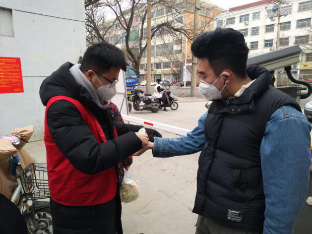 在山东省滨州市滨城区市中街道市南社区,澳门网投2018级研究生周臣像往常一样在社区服务岗进行志愿服务,使用红外线体温测量计为进入社区的居民测量体温便是他的工作之一。