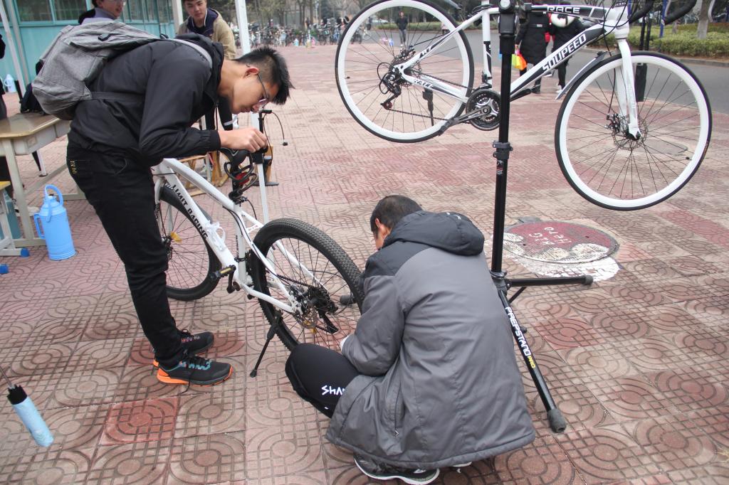 为保障同学们的骑行安全,排除自行车本身的安全隐患,指导同学们正确保养自行车,近日,澳门网投于繁星广场成功举办了“校园公益,车载我情”自行车免费维护活动。