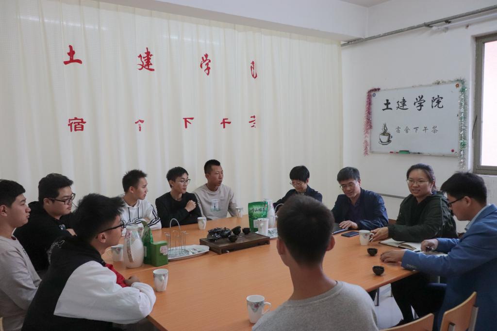 为深入贯彻落实“不忘初心、牢记使命”主题教育,广泛听取学生的想法和意见,促进师生交流,不断加强学院学生思想引领,助力学生教育、管理和服务工作,澳门网投于10月23日下午开展“宿舍下午茶”。本次活动邀请到学院党委副书记(主持工作)宋西路、教科办老师王丽华,团委辅导员张翌、刘超陪同,与学院3位参军入伍复员学生和土木18-6班GB2-223宿舍进行了座谈。