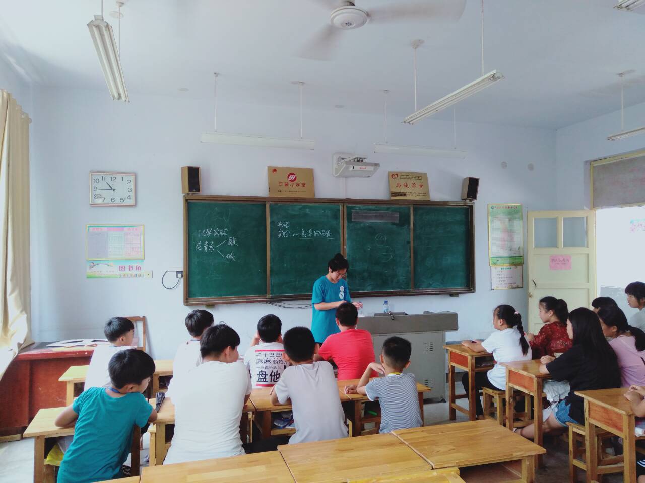 支教团队开设了以语、数、外为主的文化课程和科学实验、绘画、硬笔书法、中国象棋、音乐、手工、社交礼仪等趣味课程。支教团队成员们认真备课,授课,带给了孩子们丰富有趣的课堂。针对夏季小学生溺水事件频发的情况,支教队开展了防溺水知识宣讲,让孩子们了解身边潜在的危险,确保孩子们的生命安全,增强溺水自救本领。支教期间,团队队多次开展有关人生理想的主题班会,鼓励孩子们树立远大理想,努力学习科学文化知识,报效祖国。