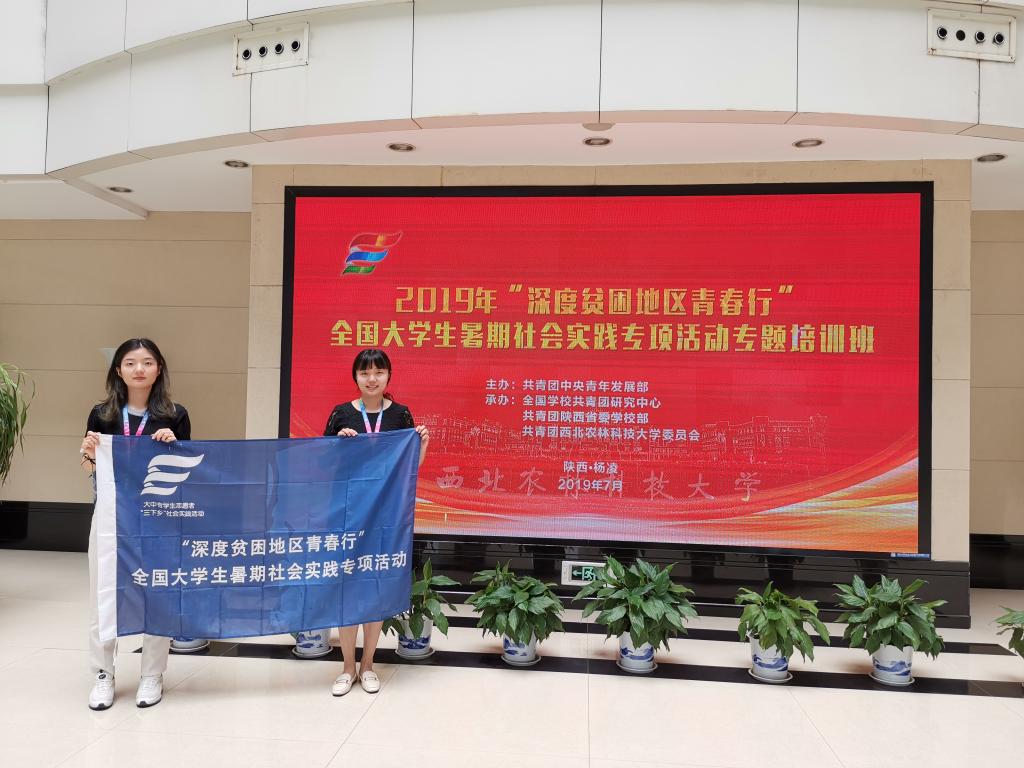 7月7日至10日,2019年“深度贫困地区青春行”全国大学生暑期社会实践专项活动专题培训班在西北农林科技大学举办,澳门网投唯一官网燃梦公益暑期社会实践团队师生代表尚军、杨冰玉参会。本次培训由共青团中央青年发展部主办,由全国学校共青团研究中心、共青团陕西省委学校部与共青团西北农林科技大学委员会承办。会议邀请了国务院扶贫办、中央和国家机关工委、团中央有关负责同志进行专题报告,旨在帮助和引导实践团队师生提升思想认识、明确任务要求、强化安全意识、提高实践技能,确保社会实践专项活动取得实效。