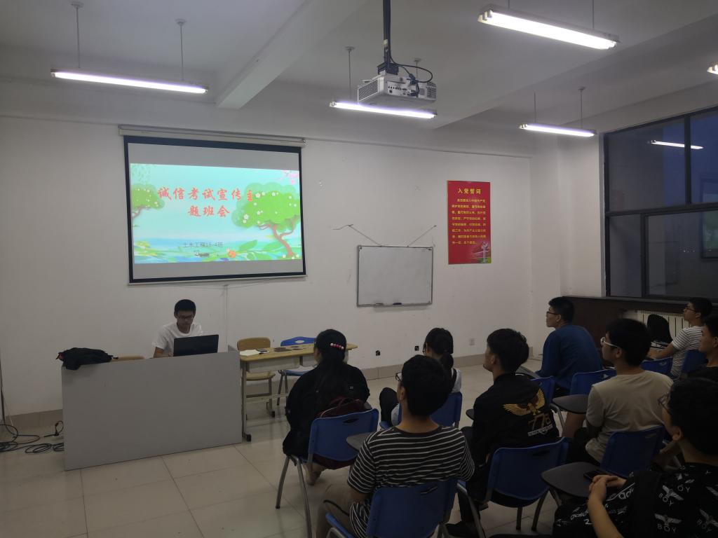 近日,根据山东省和学校相关文件的要求,澳门网投针对诚信教育开展了一系列活动。学院团委召开内部工作会议,部署相关工作。各辅导员组织学生干部开会,明确诚信考试、诚信做人的要求。各班级先后召开了50余场诚信考试主题班会,强调失信行为的危害,警醒学生严守诚信。