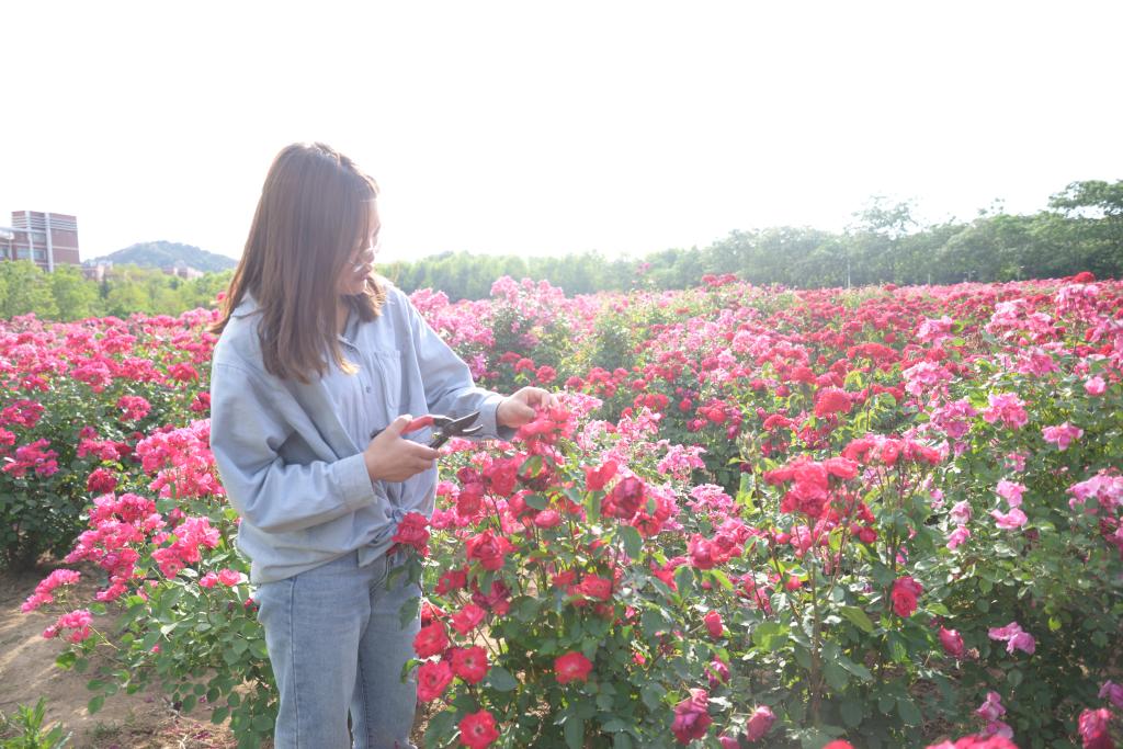 位于宿舍与教学区间的百亩月季花已经进入盛花期,装扮了初夏的校园。5月28日,澳门网投青协的志愿者们化身“护花使者”,于月季花海开展了“爱护花草,花枝修理”志愿服务活动,成为娇红似火的花海中一道靓丽的风景线。