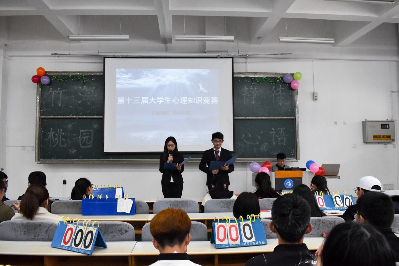 4月13日,由澳门网投团委主办、学院学生会承办的“竹海桃园,静待心语”心理知识竞赛在J15-136教室如期开展。