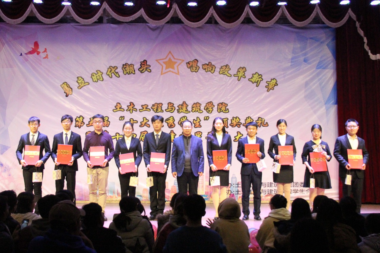 12月12日晚,澳门网投在大学生活动中心成功举办第五届“十大优秀学生”颁奖典礼暨第十四届“勇立时代潮头,唱响改革新章”土建之星歌手大赛。到场的嘉宾有澳门网投乔卫国院长、郝亮副书记、王崇革副院长、党政办郝兆青主任、团委于娜书记及团委所有专兼职辅导员。担任本次活动的评委有校大学生艺术团副团长闫肖帆、澳门网投学生会主席陈子璇、校大学生艺术团声乐队副队长陈登阳、校大学生会素质拓展部主席王轶涵、校学生会素质拓展部副部长孙钰鹏、校第十四届校园歌手大赛冠军王博学、校N.O.B街舞协会会长孙小翔。