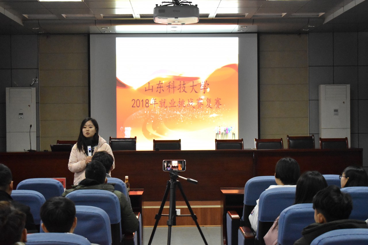 12月10日下午,校就业挑战赛复赛在 土建楼顺利举办 。澳门网投唯一官网就业指导中心老师刘梅月,山东大学、山东建筑大学就业导师、国家高级人力资源管理师李奕诺,世界500强董事局主席助理、全球华人黄埔军校“青羚学院”四期成员邢一芳担任此次比赛的评委。
