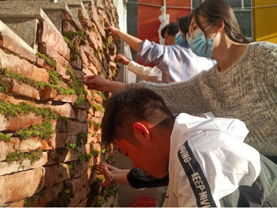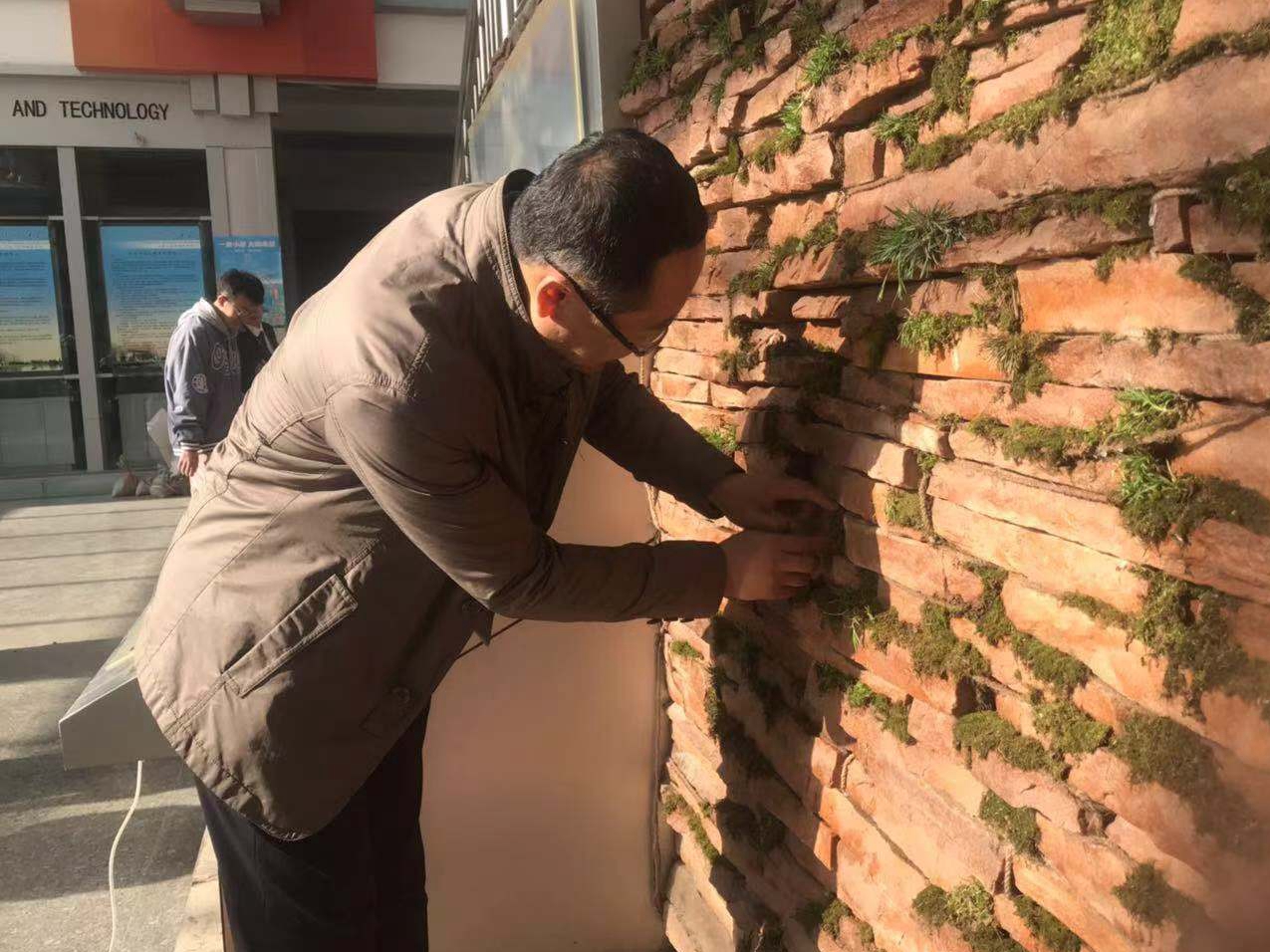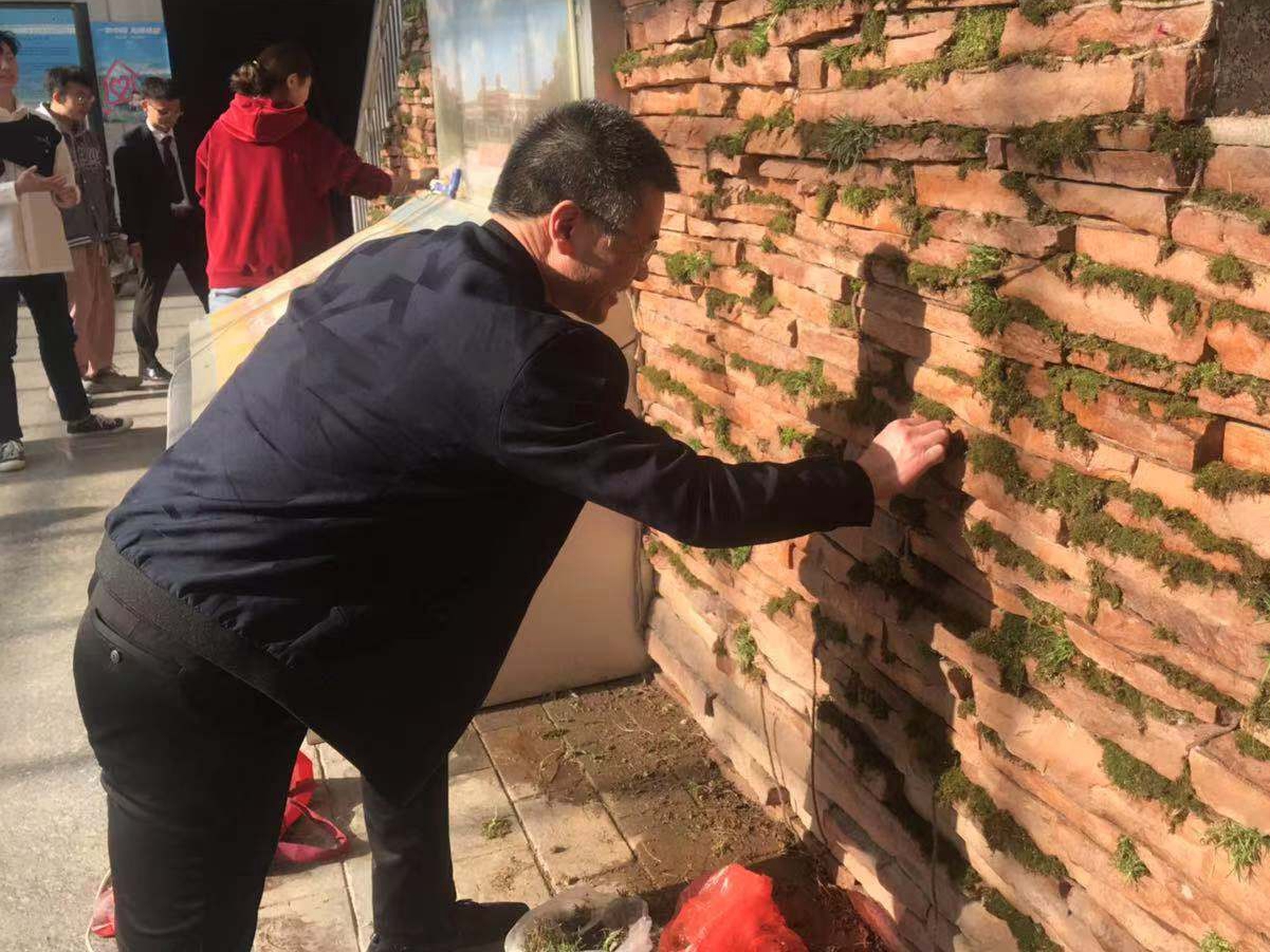 自强不息七十载,惟真求新创一流。为迎接中国共产党建党100周年和澳门网投唯一官网建校70周年华诞,营造校庆氛围,美化教学环境,彰显土建风采,近日,澳门网投西大厅苔藓山水景观墙正式落成。