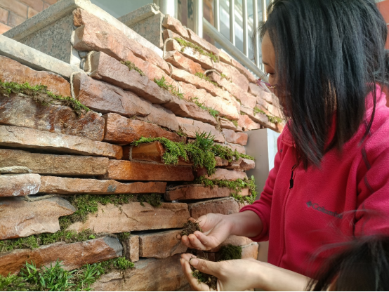 苔藓景观墙自四月初创立概念,前后历经概念设计、线稿绘制、景观规划、原料收集以及苔藓铺设,利用蓄水麻绳的毛细原理灌溉苔藓,在澳门网投楼西大厅绘制了一幅“绿色屏障”。后期养护中,除储水缸蓄水外在大厅处放置喷壶,通过倡导途经师生进行互助浇灌,在学院内形成互帮互助的优良氛围。