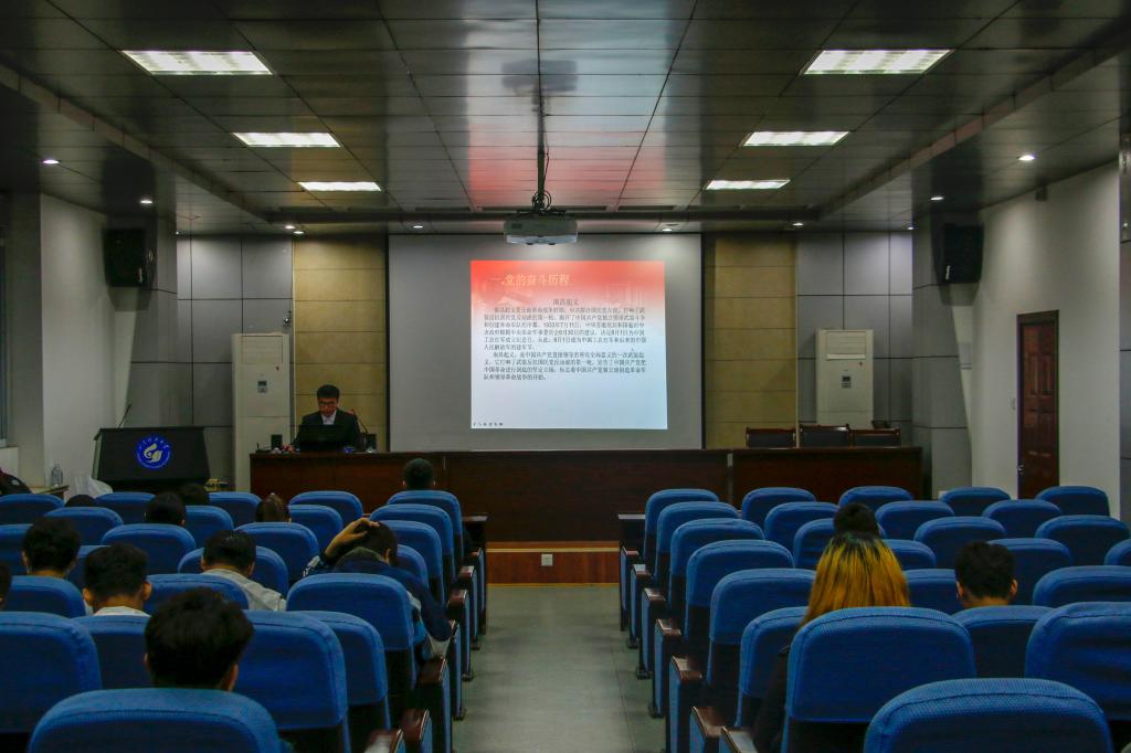 为庆祝中国共产党成立100周年,教育引导大学生加强党章学习,自觉传承红色基因,培养学生的民族自豪感与责任心,4月22日晚,澳门网投权益服务部于土建楼219报告厅开展“党员责任与义务”主题讲座,权益服务部干事焦相团担任此次主讲人。