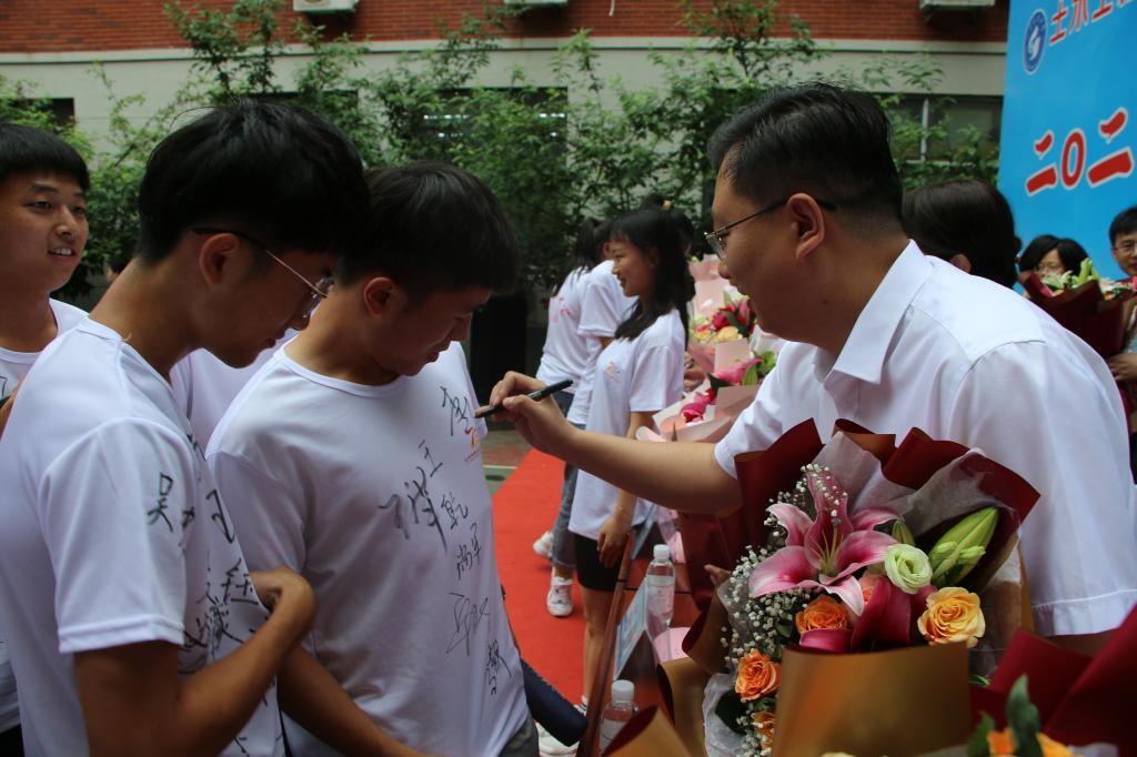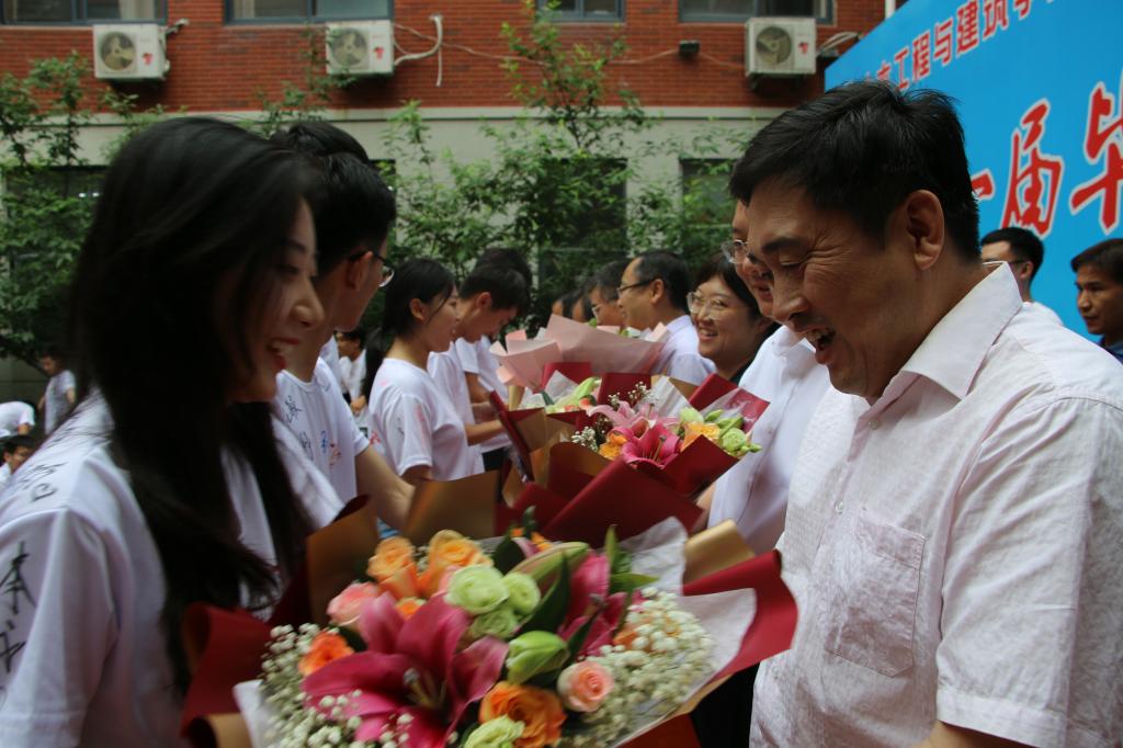 最后,王崇革院长致辞。他向毕业生们圆满完成学业表示衷心的祝贺,向一路呵护同学们成才的老师们表示最崇高的敬意。临行之际,他赠言毕业生:一、远望有群山,既然锁定了目标,就要栉风沐雨,一往无前,志存高远,奋发图强;二、心中有片海,那时我们可以包容一切的浩瀚,坚实的港湾可以抵御惊涛骇浪;三、行动如疾风,用青春活力激发时不我待、只争朝夕的热血和豪情;四、静思苦与乐,得意之时不忘形,失意之时莫忘志,担当大任之人,必将饱经风霜,方能彰显社会担当;五、常怀感恩之心,兼容包并。