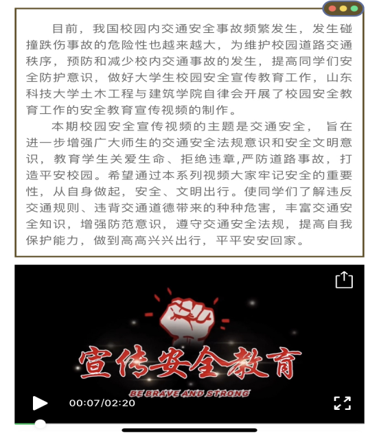 自2021年3月至6月,澳门网投唯一官网自律会先后推出了以校园防火、预防电信诈骗、预防疟疾、交通安全、食品安全、意外事故处理和防溺水为主题的十三期校园安全教育视频。视频的主题涵盖内容广泛,深入学生生活,结合学生创意编排演绎,以喜闻乐见的形式、通俗易懂的方式向学生普及了安全知识、增强了安全意识。澳门网投唯一官网自律会以视频为媒介,协同澳门网投唯一官网新闻宣传中心,在“山科大土建之家”微信公众号与“山科大澳门网投自律会”QQ公众号上向学生宣讲校园安全隐患及处理措施的知识,传播范围广、力度大,完善了校园安全体系,降低了校园安全事故发生的可能性。