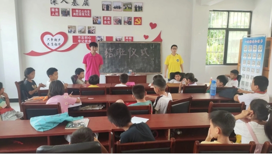 7月22日上午燃梦支教队员们举行了正式的开班仪式,课堂环境虽艰苦,但开课应有的仪式感也要呈现给学生们。在正式课程的教授中,八名支教队员的课程分为语文、数学、英语、体育、音乐、美术、卫生知识、党史教育、自护教育等常驻内容。在支教期间支教队员还根据自身的特长教授太极拳、五步拳、法律知识等内容,并且还根据河南郑州洪灾疫灾讲解防溺水防疫情知识,号召孩子们为郑州抗洪抗议加油助威。结合东京奥运会为孩子们讲解奥运会有关知识,增强孩子们的家国情怀。