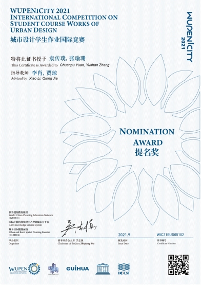 2021城市设计学生作业国际竞赛是由WUPEN(World Urban Planning Education Network)世界规划教育组织、联合国教科文组织iCity网站(UNESCO-iCity Website)、Guihua杂志联合举办的国际赛事。2021年竞赛主题是“未来智慧家园”,本次赛事共收到国内同济大学、华中科技大学等诸多院校建筑学、城乡规划专业本科生共计1010份城市设计作品。最终评选出金奖50名、提名奖100名。