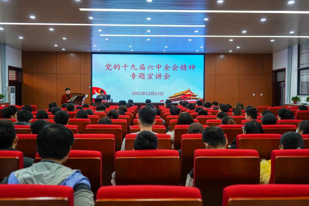 12月22日下午,澳门网投在J15-136报告厅举办党的十九届六中全会精神宣讲会。会议邀请“山海泉”理论宣讲团成员、马克思主义学院副教授贾强老师进行宣讲。澳门网投党委副书记高静主持宣讲会,学院全体辅导员老师及学生代表参加会议。