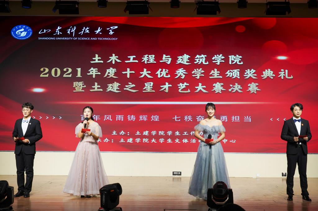 青春弱冠展风采,土建学子绘芳华。为展现土建学子的风采与魅力,丰富学生课余生活,12月26日,澳门网投于大学生活动中心二楼报告厅隆重举办2021年度“十大优秀学生”颁奖典礼暨第十七届“百年风雨铸辉煌,七秩奋进勇担当”土建之星才艺大赛决赛。澳门网投院长王崇革,学院党委副书记高静,学院党委委员、建筑与城乡规划系支部书记代朋,建筑环境与能源应用工程系老师李慧敏,学生工作办公室主任朱统汉以及澳门网投全体辅导员老师应邀参加了本次活动。