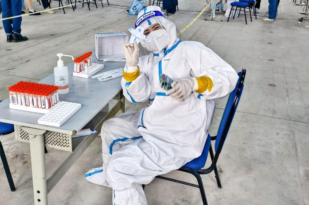 同学们来到学校核酸检测点,等待核酸检测工作结束后,将自己亲手制作的“抗疫‘大白’”送给了医护人员和志愿者并表达了自己的敬意和感谢。医护人员和志愿者收到“礼物”后,工作的疲惫瞬间一扫而光,脸上露出了欢喜的笑容。